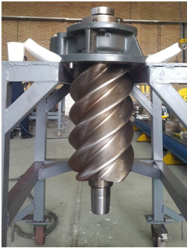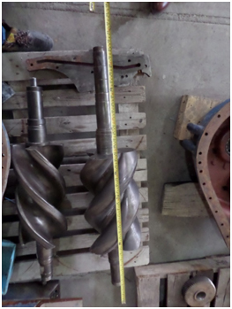 ج) تعمیر کمپرسور پیچی Keaser مربوط به مجتمع ملی فولاد ایران به روش جوشکاری تعمیری در قسمت های سایش یافته ماردون ها و پوسته در اثر سایش