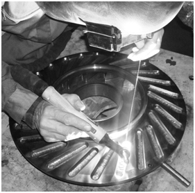 الف) تعمیر پروانه مرحله هفتم کمپرسور پتروشیمی فناوران به روش GTAW با تکنولوژی ساخت اینزرت.